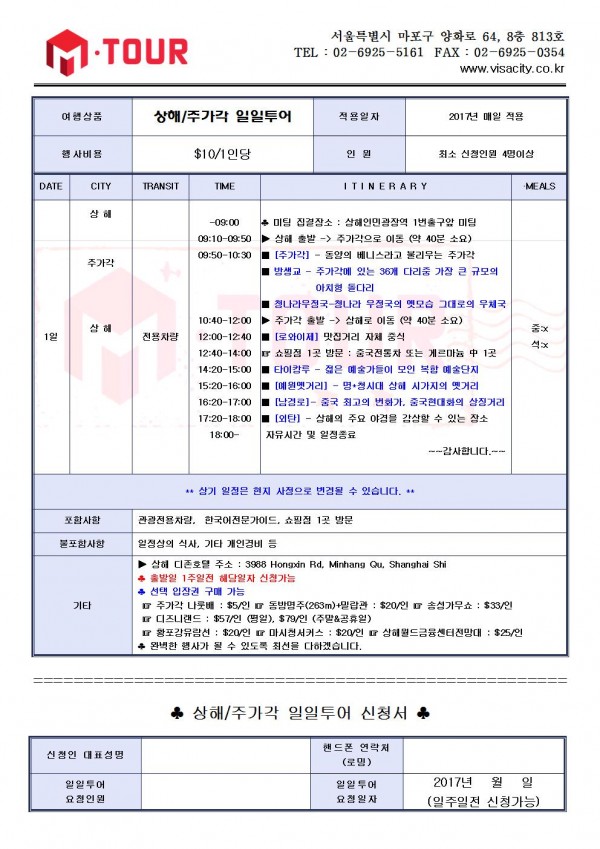 2017년 공지 이후 매일 출발 최소 4인이상 신청시 가능합니다. (단, 신청은 일주일전으로 마감)