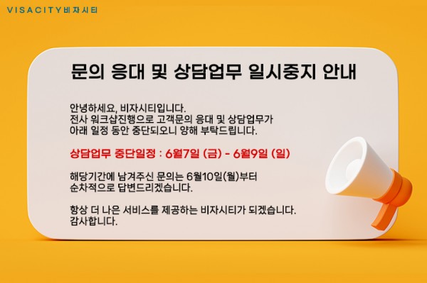 비자시티를 찾아주시는 고객분들께 감사의 인사말씀 먼저 드립니다.